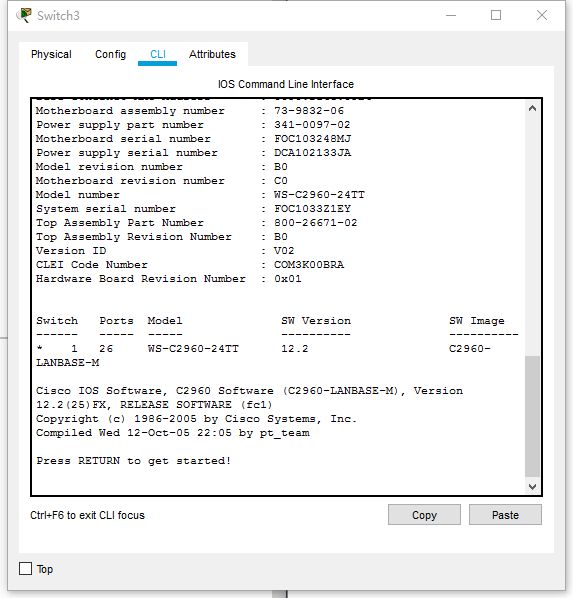 enable 进入特权模式(一般简写为en) config t 进入全局配置模式 interfacefa 0/1 进入交换机某个端口视图模式 exit 返回到上级模式 end 从全局以下模式返回到特权模式 ## 快捷指令 帮助信息(如? 、co?、copy?) 命令简写(如 en 的完整命令为 enable) 命令自动补全(Tab) 快捷键(ctrl+c中断测试,ctrl+z退回到特权视图) reload 重启(在特权模式下) hostname X修改交换机名称(在全局配置模式下)